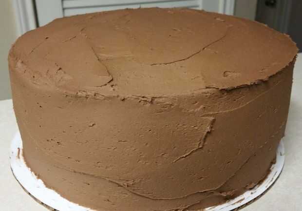 Una vez que el glaseado de chocolate cremoso, agregue en una capa uniforme sobre el glaseado de caramelo.