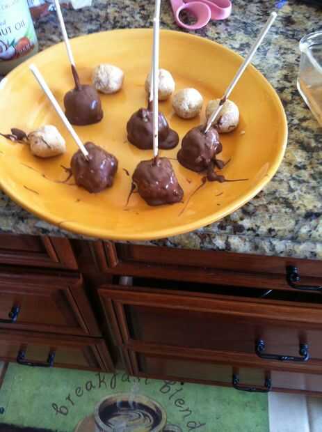 El fusible chocolate y añadir alrededor de 1/2 taza de nutella y un poco de aceite de coco. Siga las instrucciones de calentamiento normal en el paquete de chocolates solo poner en el aceite de coco y Nocilla cuando se derrita.  Una vez que la mezcla se haya derretido, colocar los cake pops en un palillo y sumergir en el chocolate. Espere que endurezca y servir. ¡ Disfrute!