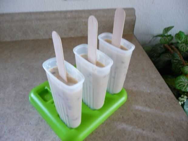 El relleno de plátano-avena será suficientemente densa para mantener que el arte de la pega vertical. 2/3 de la manera abajo en la paleta y se congelará durante al menos 6 horas.