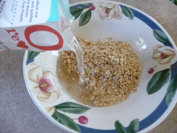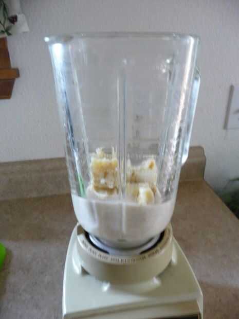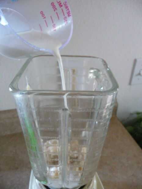 Poner la avena en la licuadora. Añadir 1/4 taza de leche, mezclar hasta que quede suave. Añadir 1 cucharada de azúcar morena y el plátano. Mezcla hasta que quede suave.