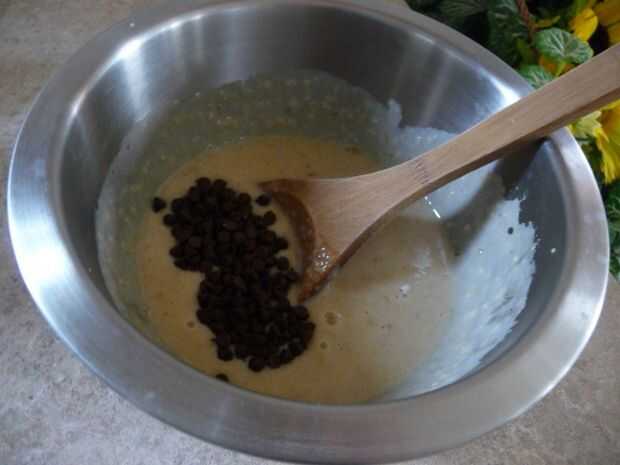 Vierta la mezcla en un tazón. Doble 1/4 taza mini chips de chocolate. Verter/cuchara la mezcla en los moldes de paleta, dejando 1/2" en la parte superior para la expansión.