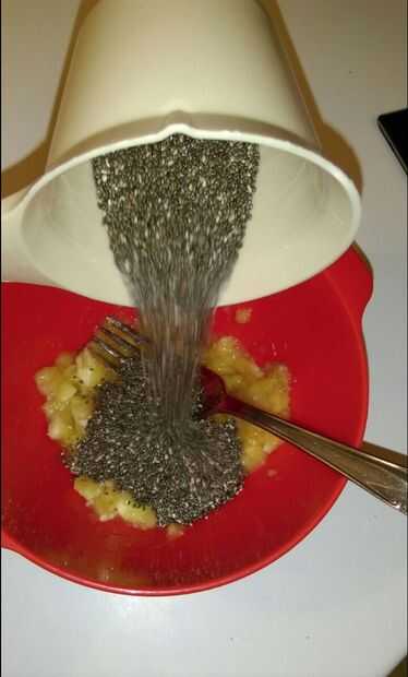 En primer lugar, triturar los plátanos con un tenedor. Los más maduro, mejor. Entonces agregue las semillas de chia y mezcle bien.