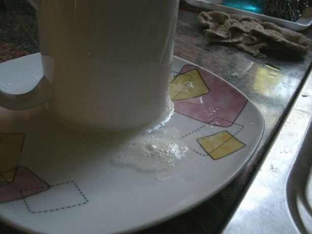 Mientras se calienta el agua, las burbujas suaves desbordaban la taza. Es por eso que ponemos sobre la placa: consigue todas las burbujas por lo que no necesitamos limpiar el horno.