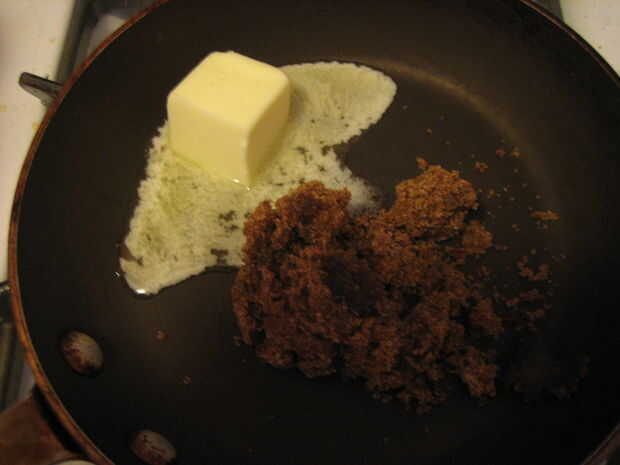 2. Añadir la mantequilla y el azúcar morena a una olla pequeña