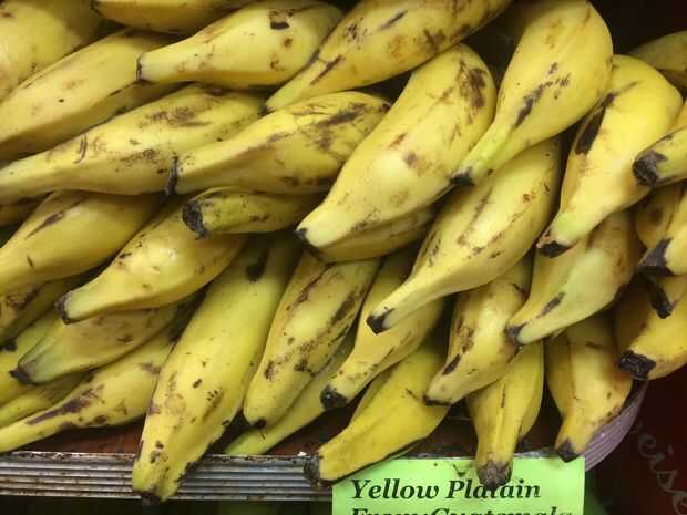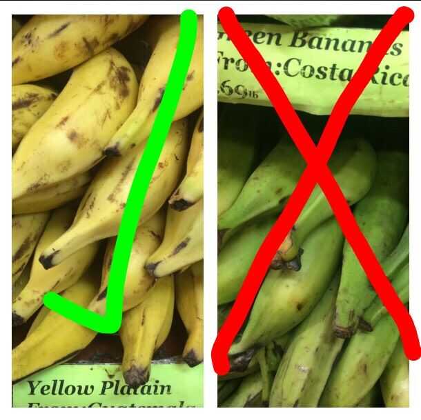 Para este tipo de plato que desea comprar amarillo o casi negro plátano. No comprar los plátanos verdes. Los que no son dulces y son para hacer los tostones.