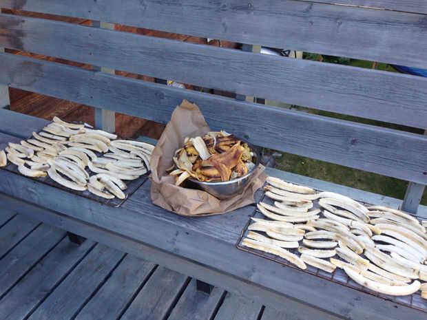 Los plátanos consigue más pequeño y más marrón mientras se secan. (Al parecer, que sumerge el plátano en zumo de limón ayudarán a mantenerlos Dore mucho - me avisas si probar esto).
