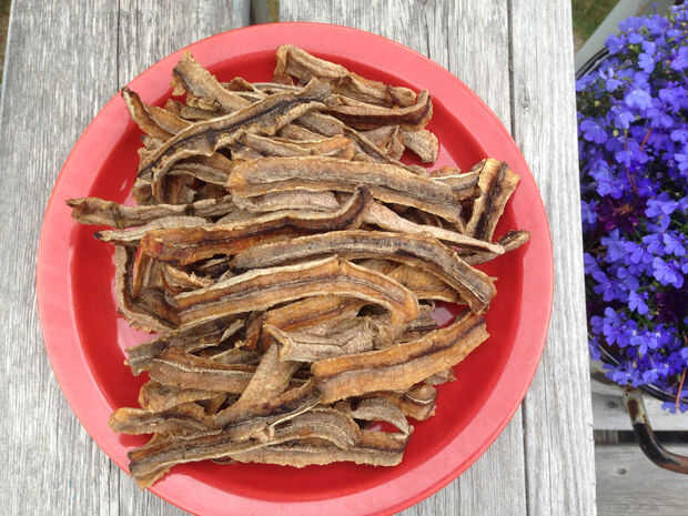 Eso es un montón de plátanos secos! Este lote de plátanos secos llena tres bolsas zip-lock medio completamente.