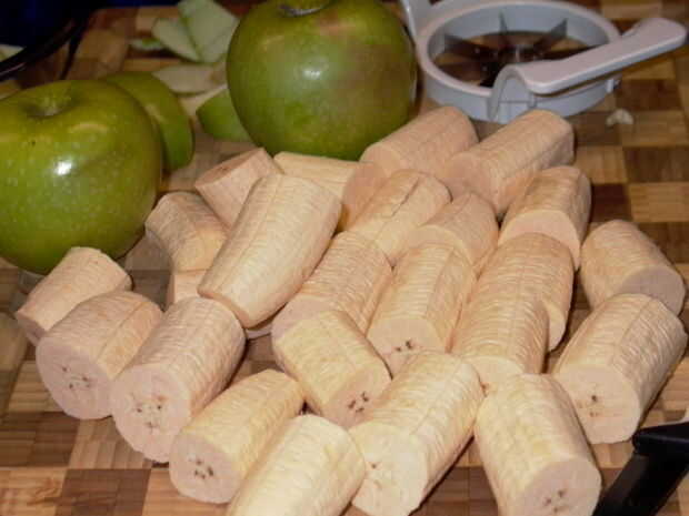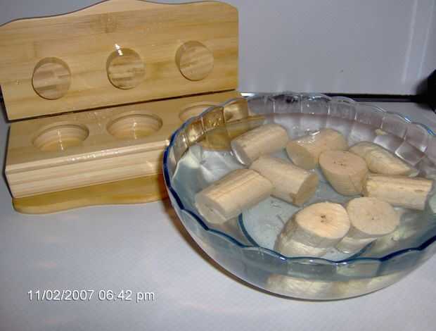 3) un buen ojo, los plátanos tienen que cortarse en pulgadas de 1 1/2 rodajas.