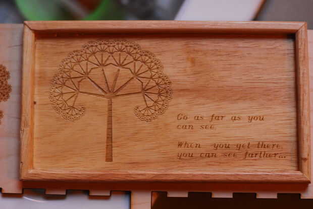 La primera tarea era encontrar algo significativo para grabar. Después de la web para ideas e inspiración para currican y anclado en tener una cita y la imagen en cada plato. Me ha pasado a tener un libro con una recopilación de citas de mis suegros, así que recoger algunas citas de era fácil y significativo. También sé que bajo las plantas y empezaron a buscar imágenes de las plantas/árboles y encontré estas ilustraciones de árboles fractales increíbles en www.rgbstock.com. Éstos eran libres para uso no comercial y fractal detallada naturaleza de la ilustración es excelente para demostrar la exactitud de la aguafuerte del laser!