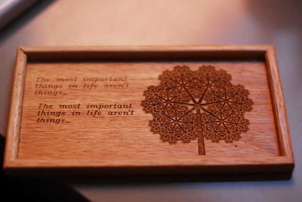 En primer lugar de aprendizaje: el tipo de madera utilizas realmente importa! lo que salió con hermoso detalle en la madera de desecho salió menos detallado en la placa. También el texto era demasiado liviano ser visto.