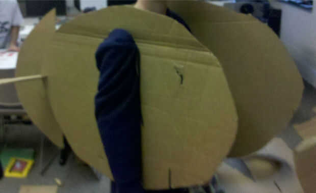 Esta idea del traje que se originó en un proyecto escolar. Fueron desafiados a diseñar un traje relacionados con Marina sólo ranurado construcción y cartón reciclado. No se nos permite utilizar cualquier tipo de adhesivo que podría impedir la habilidad para el disfraz de separar y almacenar fácilmente. Mientras progresaba el proyecto, se formaron nuevas ideas, y finalmente, el producto final llegó a ser.