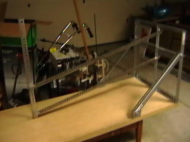 Una pieza más ancha de ángulo de hierro fue agregada horizontalmente para reducir al mínimo la torsión de la pieza vertical central. Torsión se convertiría en un problema más adelante.
