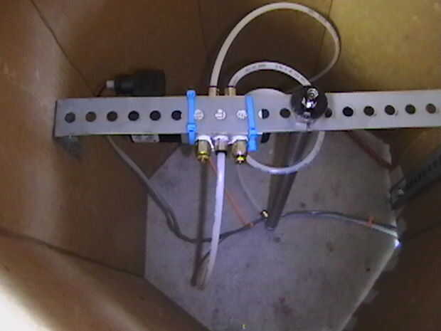 Dentro de un cilindro de aire adicional de 3/4 de pulgada de diámetro y 13 pulgadas movimiento fue montado como se muestra el tubo de cartón, un solenoide adicional fue agregado para el control de este cilindro. Las conexiones son similares al primer cilindro.