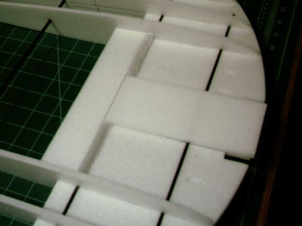 Instale el doubler de marco en forma de T en parte inferior del disco.  La parte superior de la T se alinea con el borde de fuga de sección de centro.  Puede biselar los bordes delanteros de la parte exterior de la T si se desea.