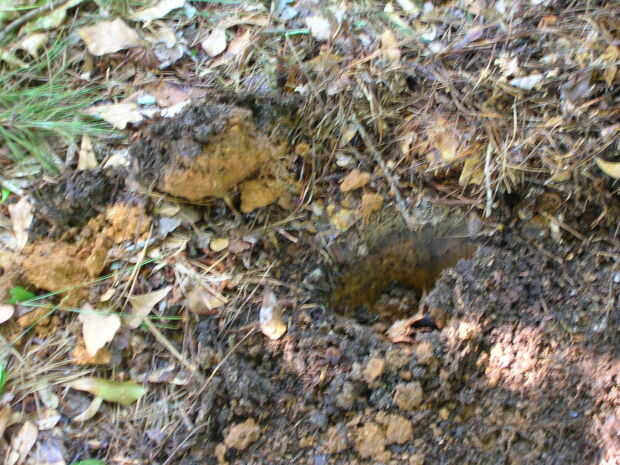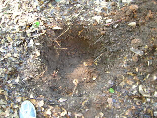Ahora cavan un agujero pequeño, aproximadamente de 6 a 8 pulgadas de profundidad, el propósito de esto es ver si hay un alto contenido de arcilla. Si existe, encontrar un nuevo lugar para enterrar.
