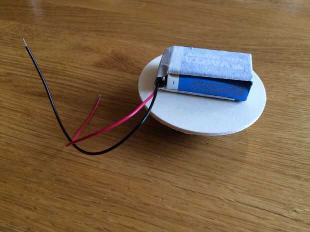 Voltee el plato y colocar la batería en la parte superior. La plastilina debe ser pegajosa para sostenerla en lugar.