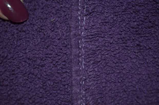 Doble 1/3 y puntada hacia abajo de arriba a abajo. Esto evitará que la tela moviendo dentro de uso y lavado.