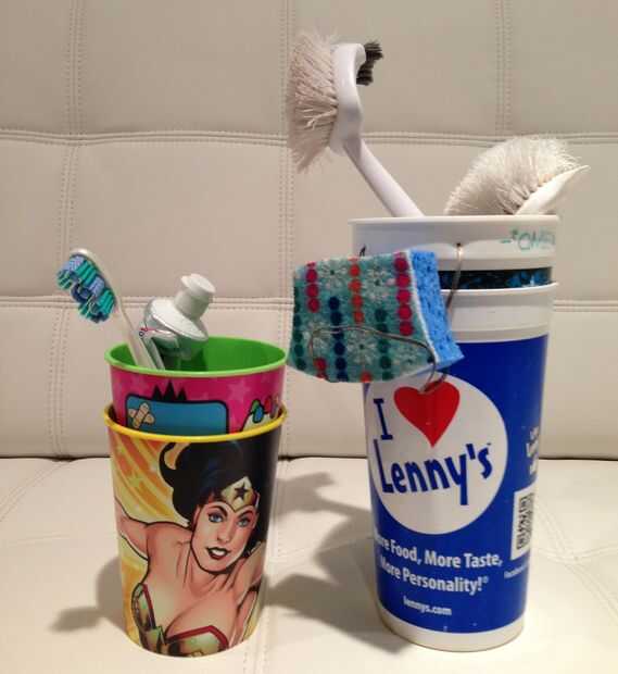 Aquí está cómo hacer tu propio organizador de cepillo plato superior (o cepillo de dientes) en el barato. Universitarios buscan para ahorrar dinero cerveza, mirad! :)