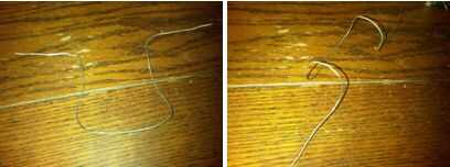 Doblar el alambre como se muestra en la imagen de la derecha. Doble hacia adentro los extremos cortados y pase por los dos agujeros cerca del borde. Dentro de la taza, trence los extremos hasta que estén seguros.
