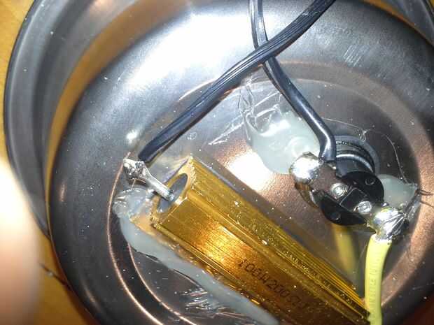 Soldar los cables a los extremos desconectados de los componentes de protección térmica y resistencia.