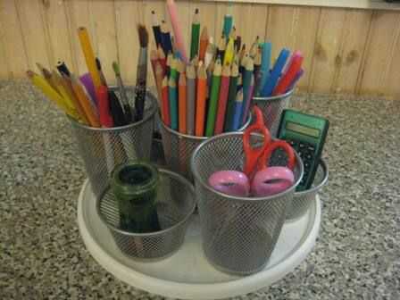 Esta idea surgió porque las tinas de plástico de la caja de zapatos que utilizamos para materiales de arte que llenaron de legos, broches y otros objetos pequeños.