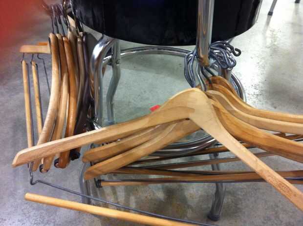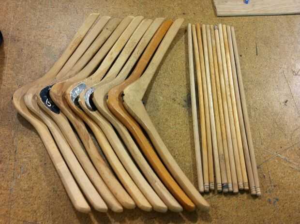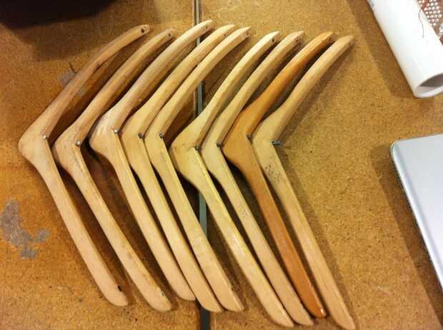 Es crucial que sus suspensiones tienen varillas de madera y que adquirir al menos 9-10 perchas (su número depende de cuántos taza titulares que desee en su bastidor). Es una ventaja tener unos extra en caso de que usted rompe algunos (ha obligado a pasar a menos que seas extremadamente ágil al tirar el metal de los ganchos y agujeros más adelante). Para preparar las suspensiones debe cuidadosamente Extraiga las espigas de los largueros de acero y los reservamos. Entonces tendrás que agarrar un vicio agarre y con la percha fijada en una mesa o un vicio de la abrazadera, saque tanto del acero de la madera como sea posible. Algunos pueden ser más de un desafío que otros pero mueva y tire y deben todos salir relativamente fáciles. Usted debe dejar con 9 ganchos y tacos de 9. El metal puede reciclarse o echado y el producto final sólo tiene 4 clavijas.