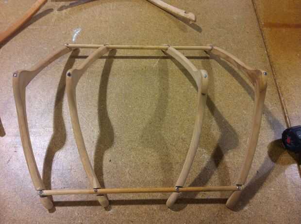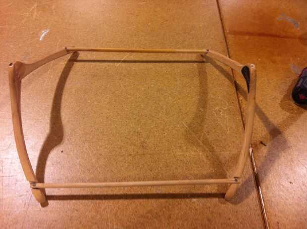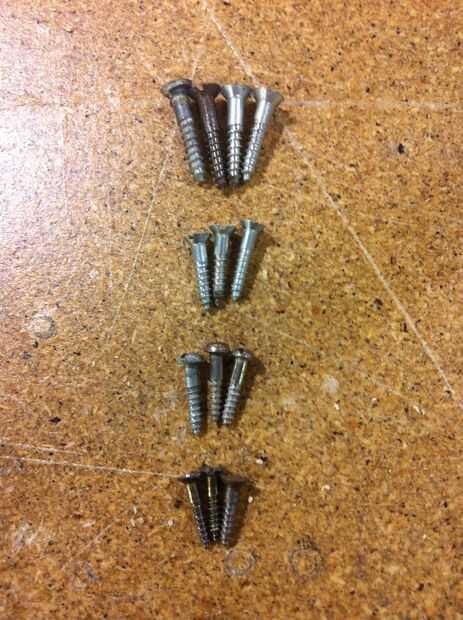 Para el montaje de la rejilla de secado usé un tarro grande agradable de tornillos de cabeza avellanada que adquirí en una tienda de segunda mano. Recogí 3 tamaños/longitudes diferentes para el proyecto para diferentes espesores de piezas adyacentes. Elegí los pedacitos de taladro que eran ligeramente más pequeños que el diámetro del tornillo específico para los miembros de cada unión. Empecé con una suspensión curva hacia fuera y coloque el extremo de mi pasador en la ranura que corte antes. Taladré directamente hacia abajo a través de la espiga y en la suspensión. Tomé mi tornillo y sujetar las dos piezas asegurándose de no presionar tanto a la espiga que. Lo hice en el otro brazo de la percha y luego dos veces más por la suspensión en el extremo opuesto de los dos pasadores. Inicialmente ante las suspensiones más alejadas hacia uno otro e hizo lo mismo para las dos suspensiones interiores. Rápidamente cambié mi diseño que las suspensiones todos frente/curvar la misma dirección así que desató mis tornillos e hizo volver a la base para llegar al cuadro final en este paso.