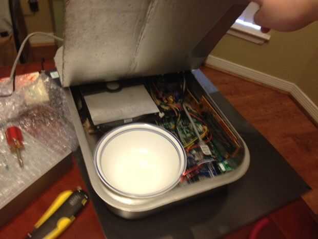 en vez de comprar un tazón de fuente/accesorio de cajón, solo usé cosas que ya tenía...Sé, alimentación perros en sus cajones no es la mejor cosa a hacer, pero a veces no hay elección. Mis cachorros no comen su comida entre el momento que me levanto