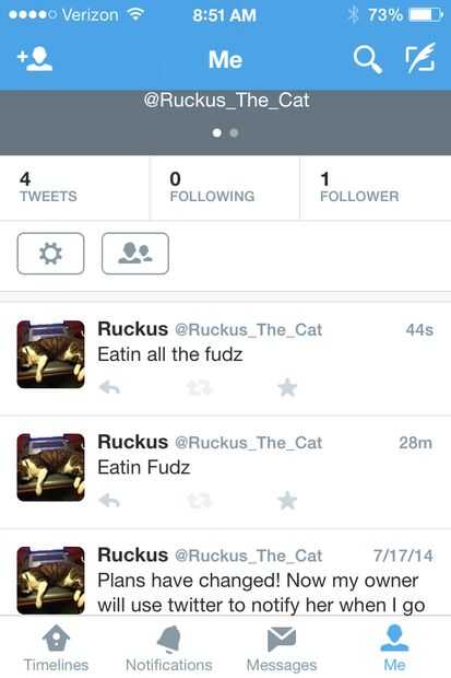 Lo anterior es el twitter que fue notificado sobre mi gato comiendo