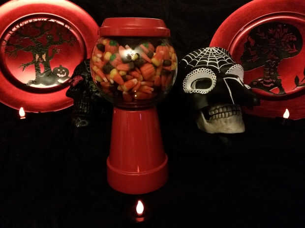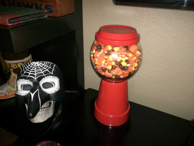 me encanta reutilizar. Recogí a una venta de garaje jarra y vela titular de palo. Agrega el pegamento del gorila y se deja configurar. Añade una cinta para mayor atractivo! Presto!!!! Plato de dulces!!