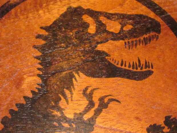 Mundo Jurásico fue increíble y me inspiró para hacerlo. Uso básico torneado, tallado y una transferencia de la imagen, pude crear esto.