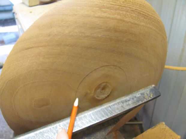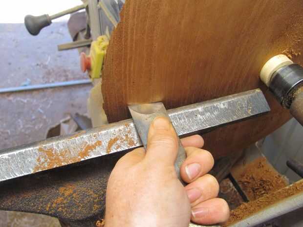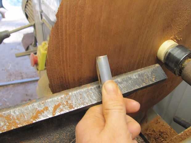 Comencé a formar la parte inferior usando una gubia. Hacer cortes de luz desde el interior hacia el exterior, tomando más el borde para crear una curva uniforme. Limpiar las marcas de herramienta de corte raspado usando el cincel para sesgar. Después de formar el borde, de arena de 120 a 400 grit. Mi objetivo es aproximadamente 50% de la forma a ser plana por la parte inferior se siente bien.