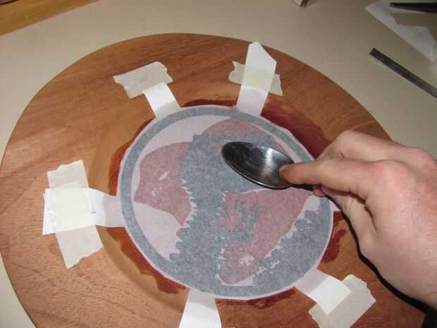 Paso 5: Utilice la parte posterior de la cuchara para empujar la imagen en la madera. Asegúrese de que usted ir sobre la tinta. Continuar durante unos minutos para asegurarse de que.
