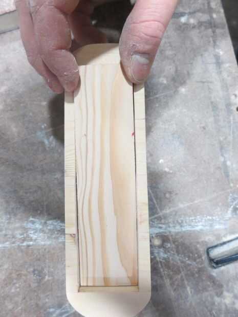 Lo primero es cortar cuadrados 2 x 4 a de cuarto de pulgada de espesor a lo largo de la cara. Revisa las fotos para ver lo que me refiero. Necesito dos de estas piezas: uno será la base y la otra, que voy a llamar a la pieza de "ajuste", se cortará en el interior el perfil de la parte inferior de la tapa y pegado a la base. La idea es que la tapa se sientan perfectamente sobre esta pieza para no deslizarse.
