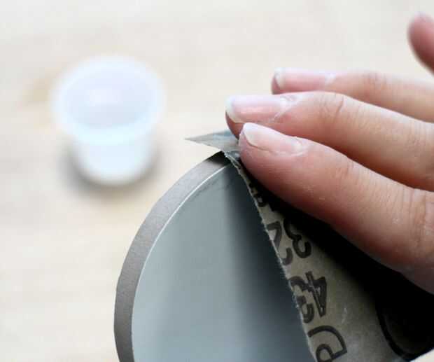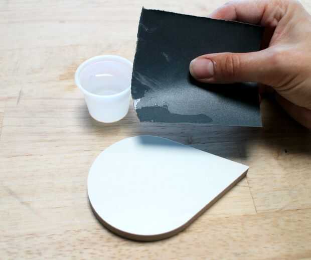 Repita el proceso de lijado con posavasos gota de agua. Asegúrese de prestar atención extra lijar los puntos puntiagudos.