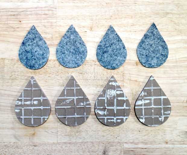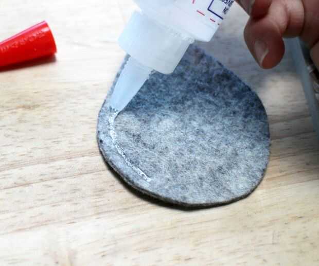 Utilice el pegamento de tela para sujetar el fieltros gotas a los fondos de los prácticos de costa.