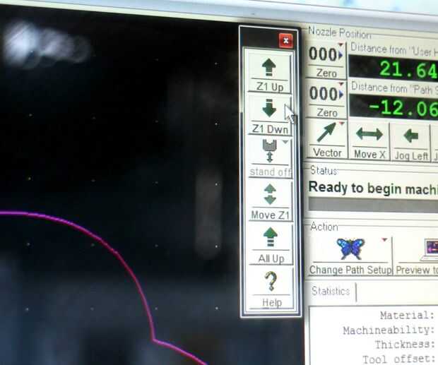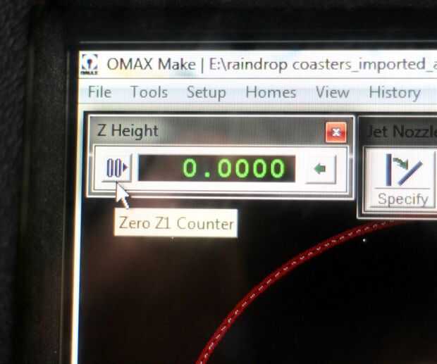 Mueva el cabezal de corte sobre la losa de mármol y muy cerca de usted. Bajar con el botón ' Z' hasta que quede aproximadamente 1" de superficie de mármol. Nota: Tenga cuidado de que no van más allá y ejecutar en el material. Podría frenar la punta.