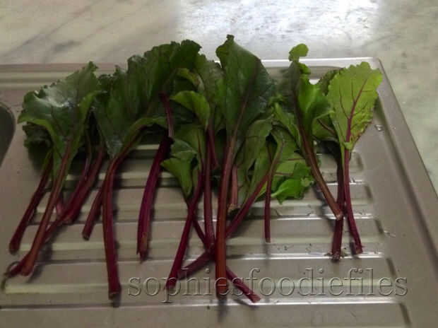 150 gr remolacha hojas y tallos, cortadas hojas y tallos finamente cortados