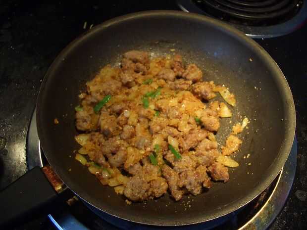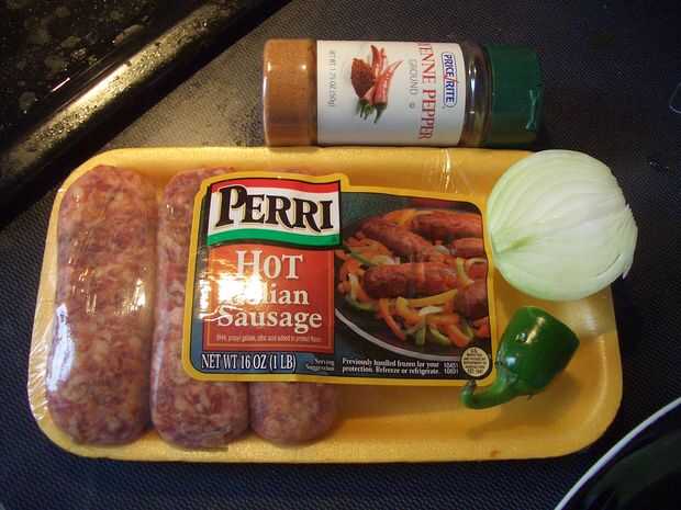 4. Cocine la salchicha en fuego medio con una cantidad de tinytiny de aceite. la salchicha le dará algunos aceite demasiado