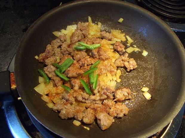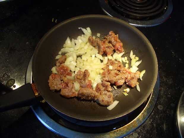 5. Añadir la cebolla picada, cuando la carne se Dora