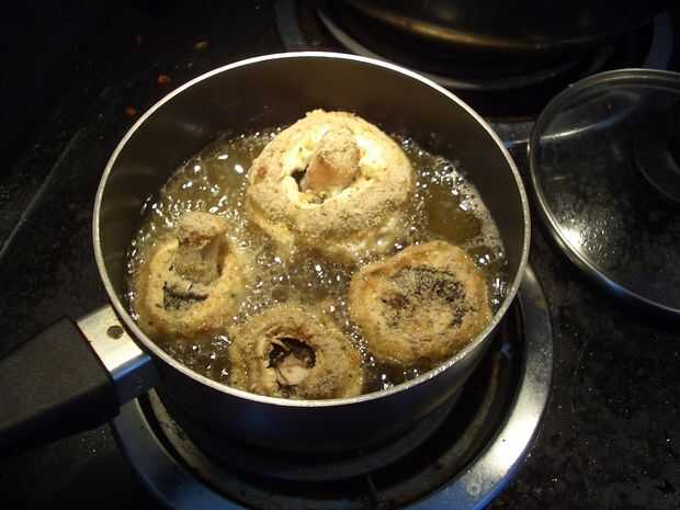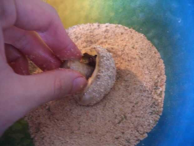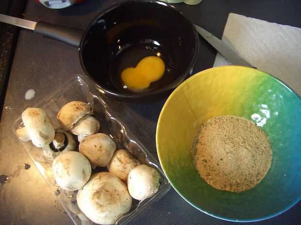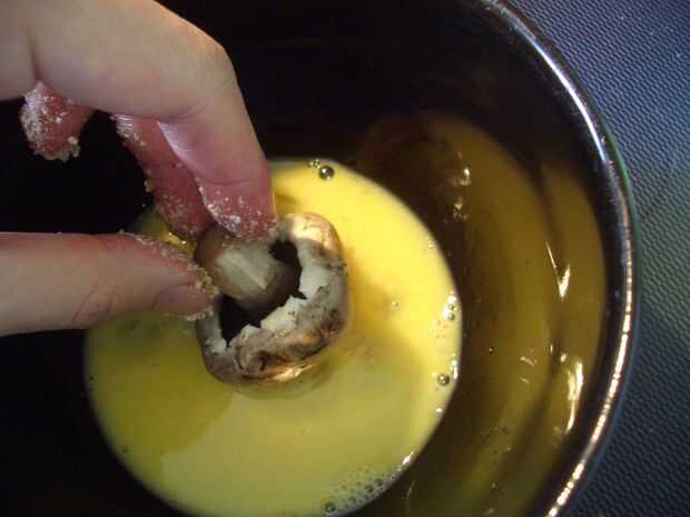 4. extra crujiente, repita el huevo y el pan miga sólo para la tapa de la seta