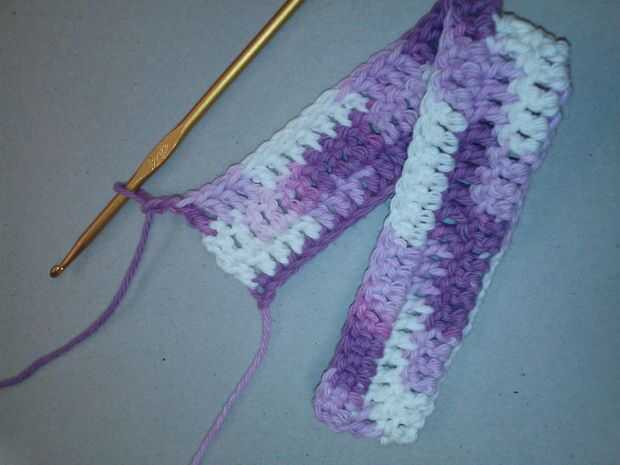Continuar el ganchillo en el mismo orden, añadiendo filas. 2 la cadena al final de cada fila. Crochet 20 filas con 40 puntos en cada fila.