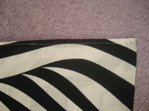 Con la hoja ahora derecha hacia fuera, coser por el borde corto, cercado cerca de la orilla posible.