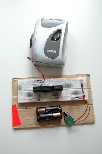 Pero la diversión lo es tener control, y la manera fácil de hacerlo es con resistencias variables. Comience con un simple potenciómetro deslizante o el mando como el de la imagen. Después de eso, puedes probar con cosas más interesantes, como colocar una fotocelda entre los cables de positivo de la batería y el motor (lo siento, que no tengo uno a mostrar!). Probablemente necesitarás más potencia, pero eventualmente podrás jugar el walkman como un theremin.