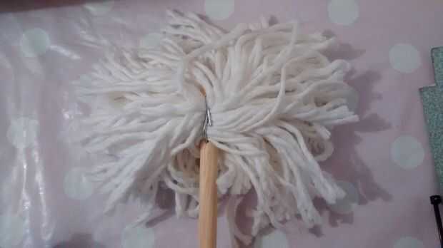 Una vez que han abierto el clip, puede sacar la mitad de la parte superior de la fregona y ponerlo al lado. Luego bajar eso clip totalmente y poner la otra mitad de la cabeza de la fregona en otro lugar.