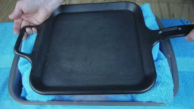 El paso final es la sartén encima de la toalla ahora humedecida. Debe comenzar refrescarse rápidamente pero mientras tanto es un buen momento para parar y hacer el helado de la mezcla.