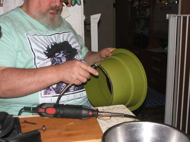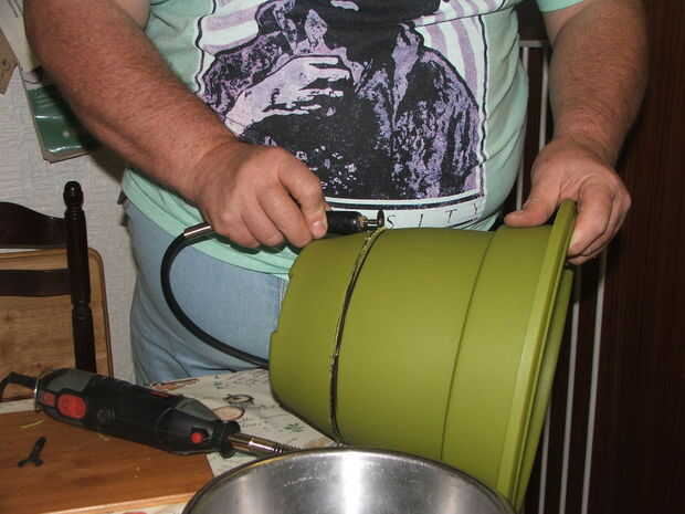 Con una sierra en la Dremel, corte alrededor de la olla.