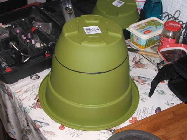 Dibuja alrededor de la maceta con el rotulador, esto le da la profundidad correcta para cortar el bote.