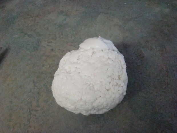 Luego vierten la arcilla en la encimera y se procedió a formar una bola, amasar la arcilla con mis manos.  El calor de mis manos ayudó a suavizar la arcilla.  .