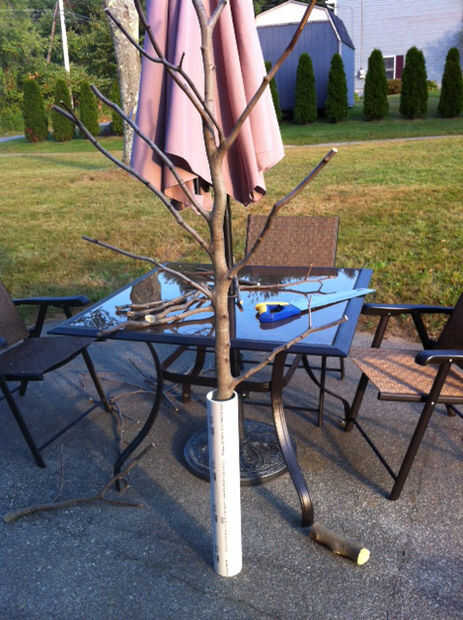 Ser seguro medir todas las puertas que desea mover el gimnasio a través de ver cuán alto el árbol puede entonces ser pone en la base y cortar el tronco y la parte superior hasta la altura correcta. La base probablemente tendrá que ser afeitado un poco para encajar en el tubo de PVC.